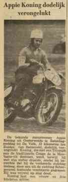 Ze trad in juli 1944 in het huwelijk met Albert (Appie) Koning uit Oosterwolde. Appie was ook geen onbekende naam in het wielrennen en had de nodige successen tijdens regionale wielerwedstrijden.