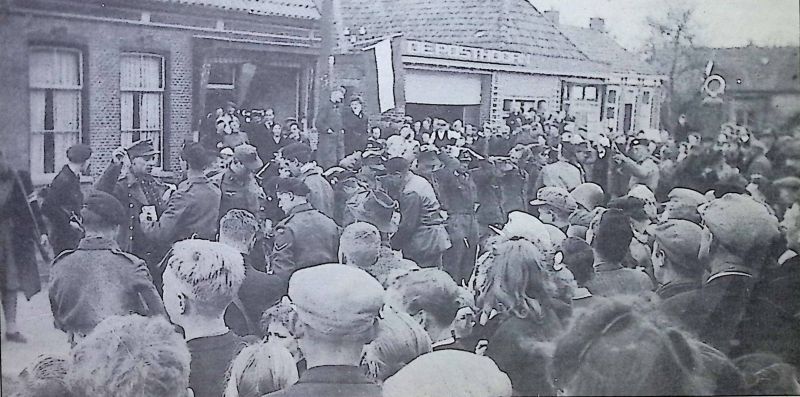 De Duitsers bleven echter weg en om 7 uur ’s morgens gingen we weer terug. Het was vrijdag 13 april 1945, de dag van de bevrijding. De loopgraaf werd geslecht en de boom verwijderd. Om 9 uur waren arriveerden de eerste Canadezen, twee pantserwagens met achterop de tweede de heer Fase, de evangelist van de Hervormde Kapel aan de vaart, die aan de Balkweg woonde.