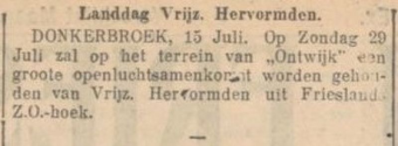 Het landgoed Ontwijk werd in de 19e eeuw aangelegd door de familie Fruitier de Talma. De inwoners van Donkerbroek mochten hier vrij wandelen vandaar de naam de Wandelbos. In 1926 kwam de laatste telg Lucia Aurelia Fruitier de Talma in Velp te overlijden. Zij was getrouwd met Jacobus Johan Hora Adema en woonde reeds lange tijd zelf niet meer in Donkerbroek. De erven Hora Adema besloten daarop het landgoed Ontwijk in 1928 te koop te zetten.