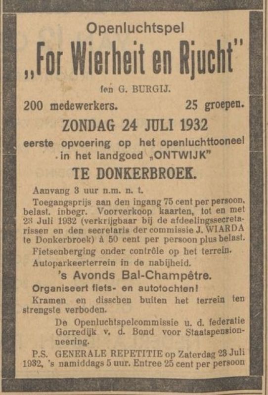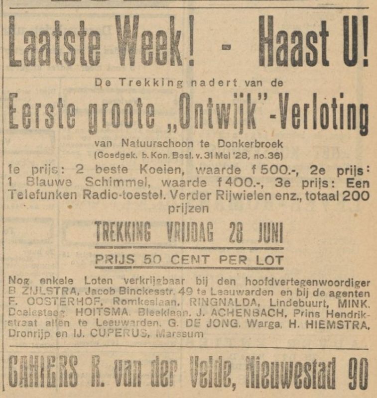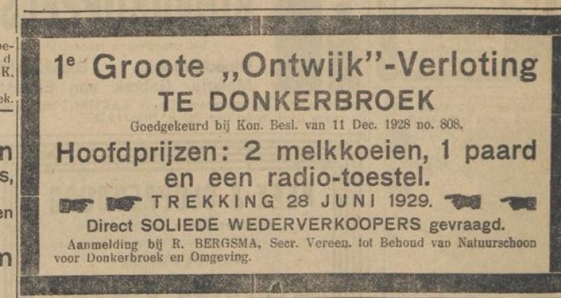 Dorpsbelang wijdde in 1928 een tweetal vergaderingen aan de voorgenomen verkoop. Tijdens de laatste vergadering verklaarden een vijftal enthousiaste dorpelingen zich bereid borg te willen staan voor de betaling van het aankoopbedrag voor het gehele landgoed Ontwijk. Het ging om Melle Oenes Meek, zijn broer Hillebrand Oenes Meek, Willem Teijema, Wiebe Hendriks Gorter en Ebe Dokter.