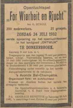Wat wellicht minder bekend is dat dankzij de inzet van de inwoners van Donkerbroek in 1928 is voorkomen dat de Wandelbos versnipperd werd verkocht en zo dus voor het dorp behouden bleef. Het leidde ook tot de oprichting van een Vereniging tot behoud van Natuurschoon.