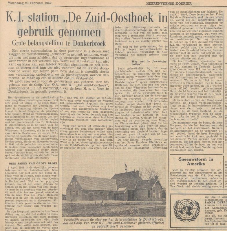 Op 19 februari 1952 werd het nieuwe KI-station van de KI-vereniging “De Zuid-Oosthoek” officieel in gebruik genomen in de laatste boerderij aan de Kerkereed.