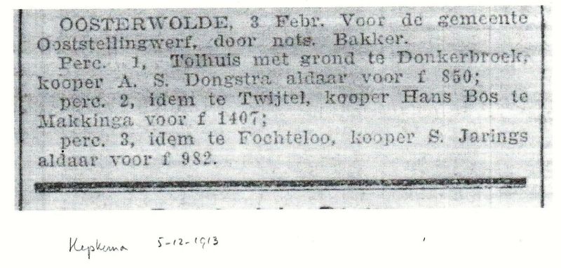 >>>>Ik heb al enige malen verzocht om van het tolhek ontslagen te worden en wordt dan van den bok op den ezel gewijsd, hetgeen ik niet door geholpen wordt. Bij de laatste vergadering heeft De Groen (dat was een toenmalige wethouder afkomstig van Donkerbroek) mij beloofd dat het besproken zou worden en dan zou ik dadelijk bericht ontvangen hoe of wat, maar tot nu toe ook al nul in het sijfer.